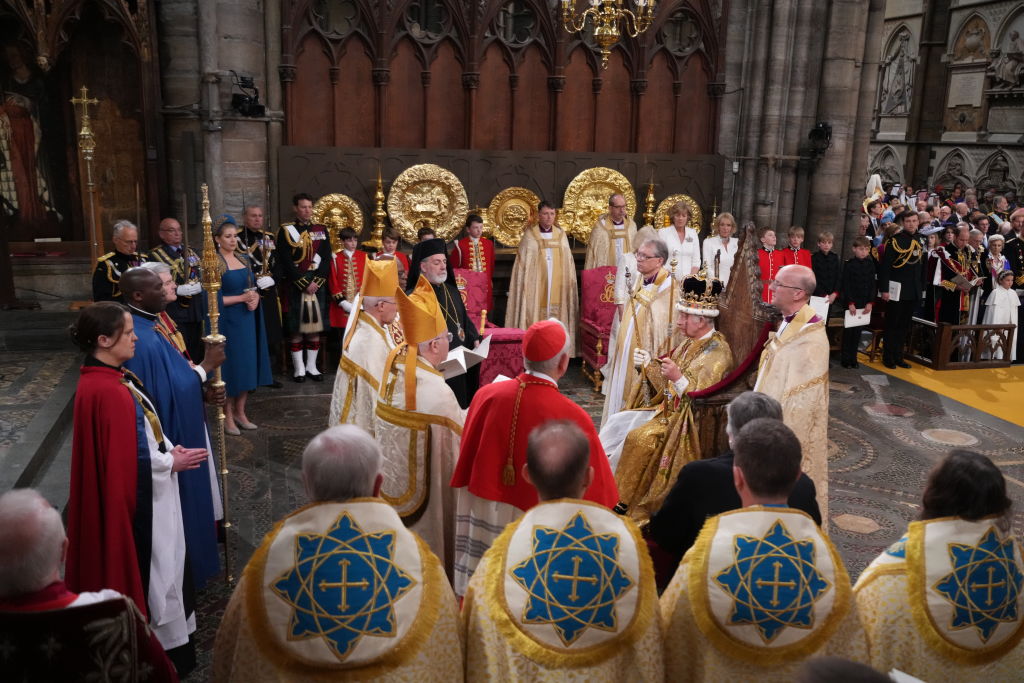 Τον βασιλέα περιβάλλουν εκπρόσωποι όλων των θρησκειών, ανάμεσά τους και ο Αρχιεπίσκοπος Θυατείρων και Μεγάλης Βρετανίας Νικήτας. (Photo by Victoria Jones – WPA Pool/Getty Images/ Ideal Image)